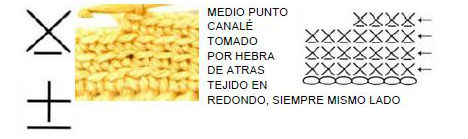 En la siguiente lista verás el símbolo de cada punto al crochet, una muestra tejida del punto, el diagrama del punto en un patrón, el nombre del punto y un botón para ver cómo se teje el punto